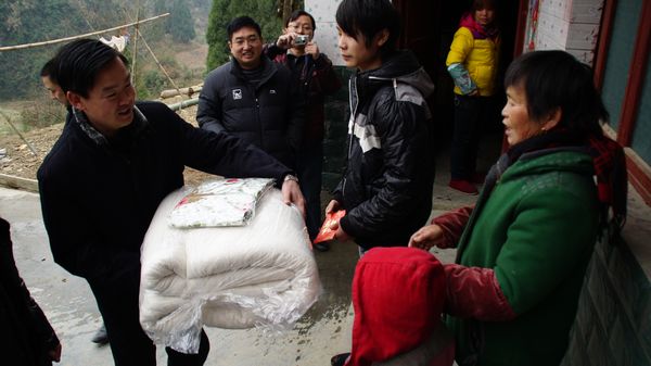 随后,李平来到联系户及特困党员廖廷江、姚作秀、谢根秀、谬永贵家中走访慰问,为他们送去棉被物质和慰问金。在廖廷江家中,李平紧握着他的手嘘寒问暖:“年货备得怎么样了?身体好吗?有病一定去看医生,有困难一定向党委、政府讲,我们会尽力来帮助你们。”特困户廖廷江长年多病,生活十分困难。听着李平亲切贴心的话语,这位农家汉子流下了热泪,连连说道:“有政府关怀,心里也就踏实了。”
