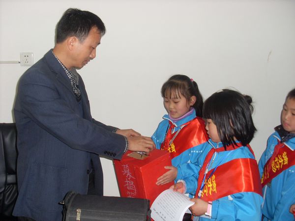 3月25日,永顺县灵溪二小的学生志愿者手拿倡议书和募捐箱,来到县行政中心向单位工作人员请求募捐。连日来,该县团县委在全县范围内发动“滳水行动.希望工程一元捐活动”,进学校、进社区、进机关、进商店、用于对困难学生的资助,点燃贫困学子求学的梦想。通讯员 刘文化 摄