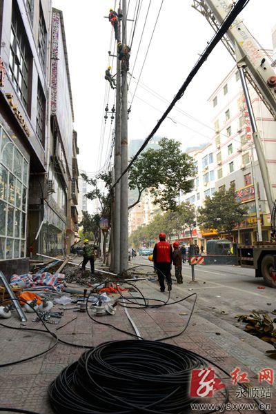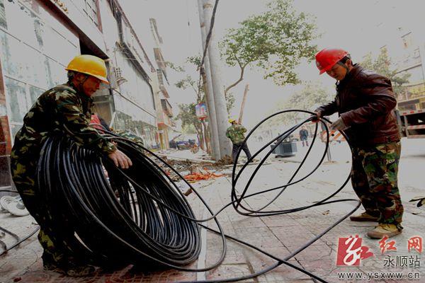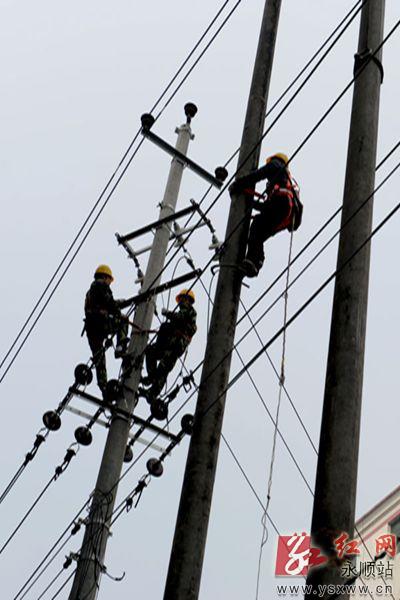 红网永顺站1月15日讯(记者 余光龙 向 远 通讯员 宋 涛)春节来临之际,永顺县电力公司针对冬季负荷高峰期,对部分区域主线进行维护,确保广大居民节日用电。图为1月14日,该公司施工人员在拉线,更换旧电杆、安装变压器。