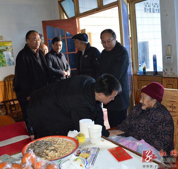 龙靖波一行首先来到灵溪镇中心敬老院,看到老人们身体健康,十分高兴地和老人们握手,表达对老人们的亲切问候和新年祝福,并送上慰问金,嘱咐工作人员要安排好老人们的春节生活。龙靖波一行还走访慰问了城南社区干部以及伤残军人、农村低保户、百岁老人、红军遗属,每到一处,都要详细询问他们春节生活的安排,同时送上慰问金和新春的祝福。