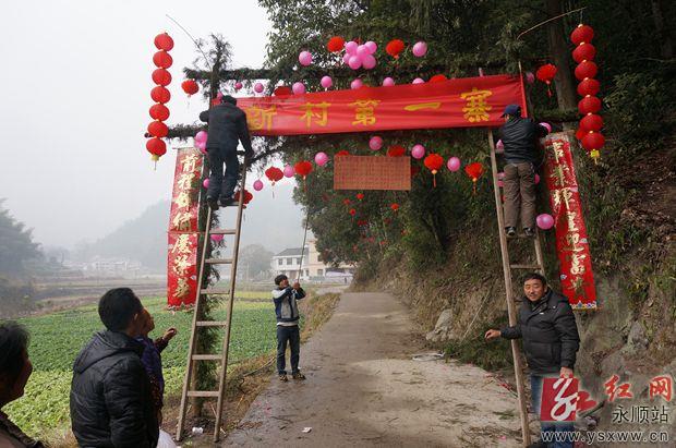 ,永顺县吊井乡吊井村刘家寨村民挂红灯,扎松门,欢欢喜喜过大年,期盼来年红红火火。通讯员