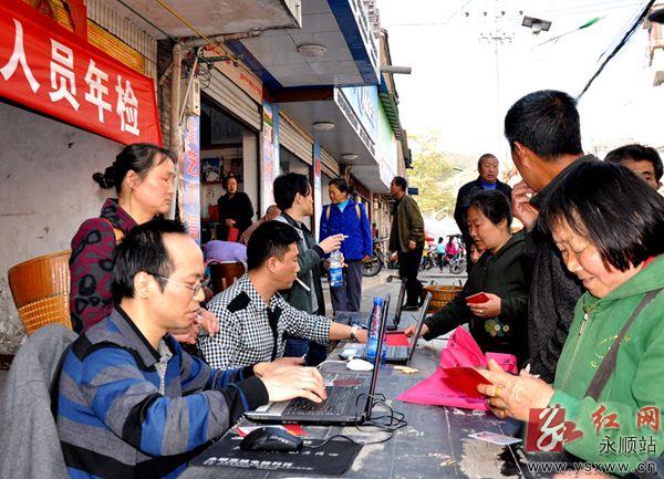 4月9日,永顺县人社局组织党员干部到万坪镇开展便民服务活动。活动现场为企业退休人员年检685人次,接受群众关于就业、工伤、监察、仲裁、农保等政策咨询2000多人次,发放人社政策宣传资料3000份。图为活动现场。通讯员吴晓敏摄 作者:吴晓敏