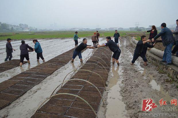 红网永顺站4月16日讯(记者 彭建国 通讯员 王敏)4月14日,永顺县农机局组织党员干部到万坪镇李家村田间地头开展集中学习活动,面对面服务基层服务群众,解决联系服务群众“最后一公里”问题。 活动现场,该局技术人员就流水线作业、育秧软盘装底土、播谷种、盖土等程序进行讲解。然后,组织党员干部在田间运送育秧盘,摆放育秧盘和覆盖薄膜。 图为活动现场。