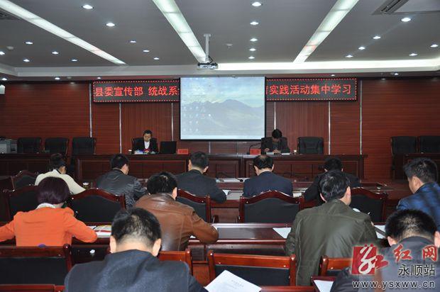 红网永顺站4月16日讯(记者田新宽通讯员程宏周)4月14日,永顺县委宣传部和统战系统开展党的群众路线教育实践活动集中学习。县委常委、宣传部长、统战部长曾维秀以《当代中国马克思主义的最新成果——学习贯彻习近平同志系列重要讲话精神》为题作专题辅导讲座。