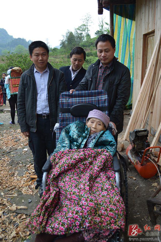 岁老人陈玉兰和刘国平送去轮椅。图为在陈玉兰家看望老人。记者