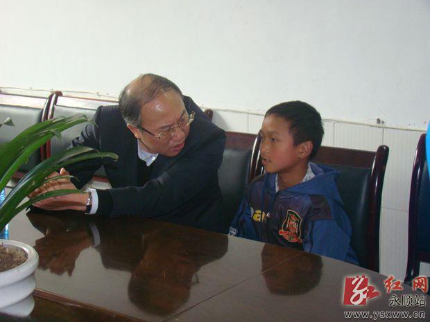 红网永顺站58(通讯员  向仍东  覃学军)57,永顺县委副书记、县长石治平轻车简从专程到石堤镇中学看望慰问贫困孤儿田吉孝,送上500元帮扶金。石治平到石堤镇中学后,为不影响学校正常教学秩序,不打扰教职工正常办公,不进班级,在学校会议室单独与田吉孝进行交流沟通,详细了解了小田的家庭情况、学习情况和生活情况,并鼓励他要克服困难,努力学习,将来做一个对社会有用、有益的人。随后,石治平还再三叮嘱该校负责人,学校要关注、关心田吉孝的学习和生活,让他在充满爱的大家庭中愉快学习,健康成长。