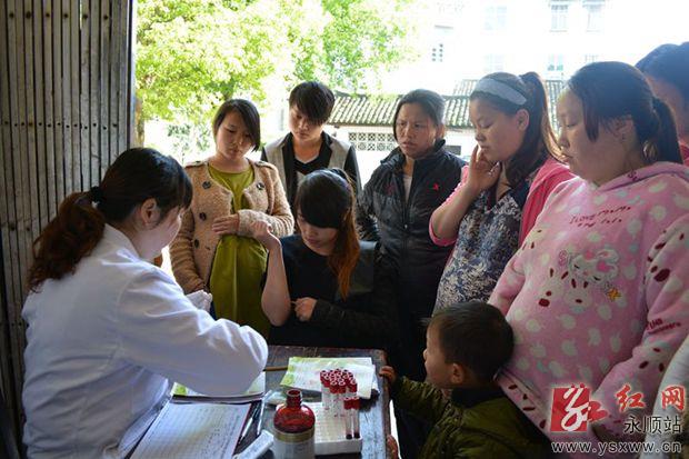 近段时间来,永顺县妇幼保健院组织巡回义诊队,深入乡镇开展巡回义诊活动,践行群众路线,真情服务群众。截至目前,已为毛坝、官坝、砂坝和塔卧等乡镇1700名农村留守妇女进行宫颈癌筛查和为300名孕妇免费进行艾滋病、梅毒、乙肝母婴传播项目的初筛。图为5月9日,该院巡回义诊队在万坪镇卫生院为孕妇进行艾滋病、梅毒、乙肝母婴传播项目的初筛。通讯员 姚微 摄