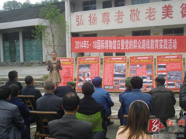 5月15日,湘鄂川黔革命根据地塔卧纪念馆在永顺县青坪镇启动“5.18国际博物馆日”主题周宣传活动,宣传《文物保护法》及关于加强文化遗产保护方面的法律、法规,和红二六军团创建湘鄂川黔革命根据地等内容。图为活动现场。通讯员向琴 摄 作者:向琴