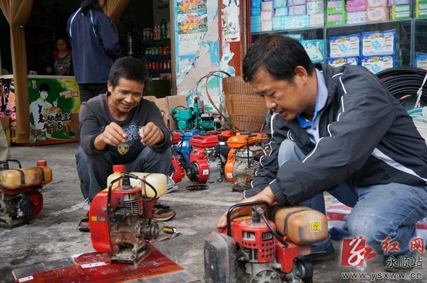又是一年秋收时,永顺县各地农民纷纷到农机市场选购农机、农具、农肥,迎战秋收秋种。图为9月5日,该县吊井乡农民在乡场上选购体积小、重量轻、适应性强的汽油打谷机,为秋收稻谷作准备。通讯员 吴华 摄 作者:吴华