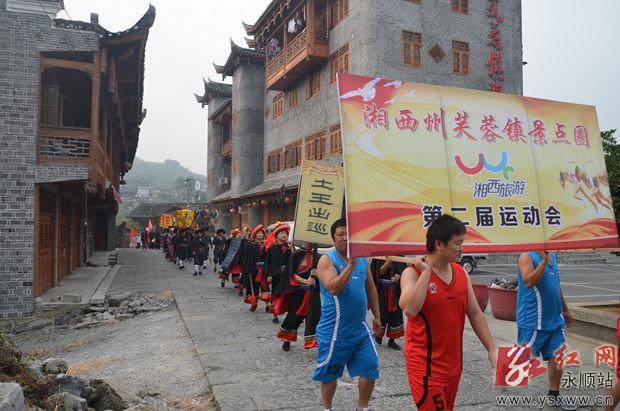 10月10日至12日,湘西芙蓉镇景点圈旅游投资开发股份有限公司在永顺县芙蓉镇举办第二届职工运动会。猛洞河公司、芙蓉镇公司、坐龙峡公司、红石林公司及总公司的170余名运动员组成5支团队,分别参加7个项目的角逐。运动会以“团结、友谊、协作、奋进”为宗旨,目的是进一步丰富旅游企业员工业余文化生活,增强企业的凝聚力。通讯员彭莉 摄