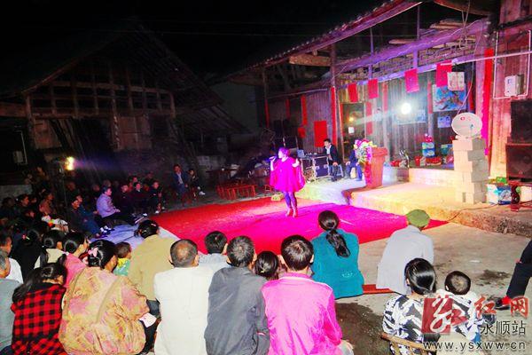 近年来,永顺县在农村大力开展先进文化进村入户活动,倡导移风易俗办喜事。图为近日,该县芙蓉镇保坪村一农户在喜庆日开展文艺活动。通讯员