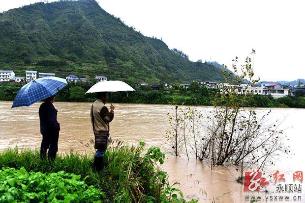 面对连日来的强降雨,永顺县润雅乡组织党员干部和应急小分队坚守在山塘水库、地灾隐患点等防范一线进行巡查,对巡查中发现的问题登记造册,并对存在的安全隐患提出整改方案,督促相关责任人限期整改,防患于未然,确保全乡安全度汛。图为10月29日,该乡干部在石桥渡口查看鱼塘水电站泄洪情况。通讯员向水生摄 作者:向水生