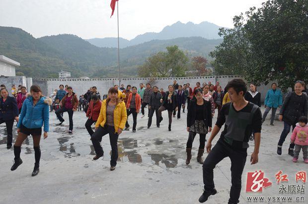 ,永顺县文化馆组织舞蹈专干到灵溪镇猛岗村辅导村民练习广场舞《小苹果》,为群众送去欢乐。通讯员