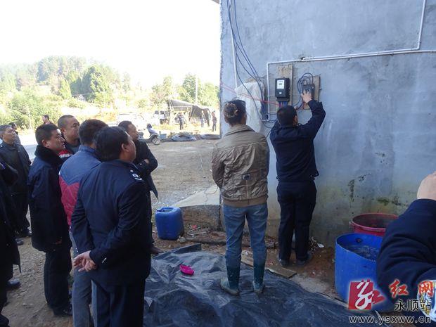 12月19日,永顺县高坪乡组织公安、电力等相关部门执法人员对辖区内5起违章建房行为下达停建通知书,并进行强制断电,着力遏制违法违章建筑蔓延势头。通讯员 熊伟 任小青摄