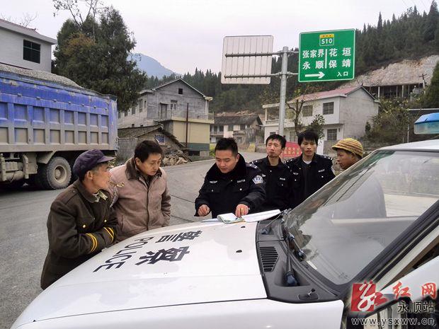 近日,永顺县泽家镇针对境内的209国道改造升级工程建设造成的超重、超载、超速等违章行为,立足实际,采取多项有效措施,进一步加强道路交通秩序。图为该镇交警在张花高速公路与209国道连接处对工程车辆进行安全教育。通讯员彭灵艳摄