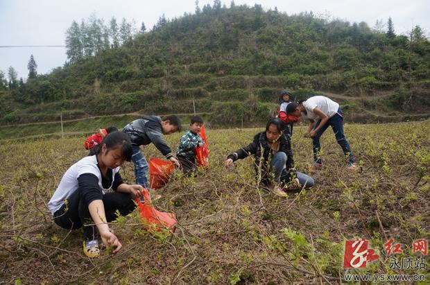 近年来,永顺县毛坝乡以市场为导向,大力发展莓茶特色优势产业,成为当地群众增收致富的“绿色银行”。图为 4月11日,毛坝村回家度周末的孩子们在田间采摘莓茶,体验劳动的快乐。通讯员 吴华 刘文化 摄 作者:吴华 刘文化