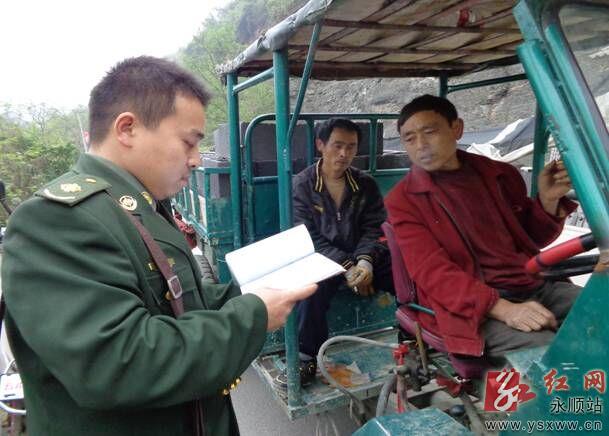 近来,永顺县农机局积极开展农机安全生打非治违专项行动,严厉打击农用车辆无牌行驶、无证驾驶、擅自改装、超速超载等行为,保障农机安全生产。截至目前,已查处违章载人车辆26起,无牌无证车辆11起,纠正其它各类违法违章行为19起。图为专项行动现场。通讯员 王敏 摄