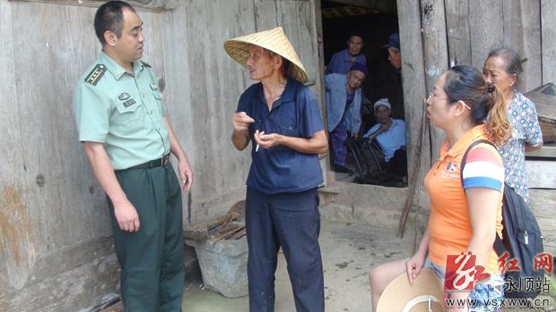 图为永顺县委常委、县人武部政委肖清平(左一)一行走访慰问雨禾村的退伍老兵张世林。