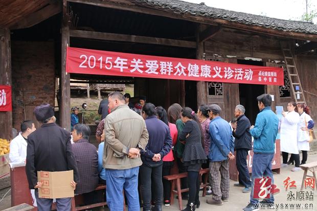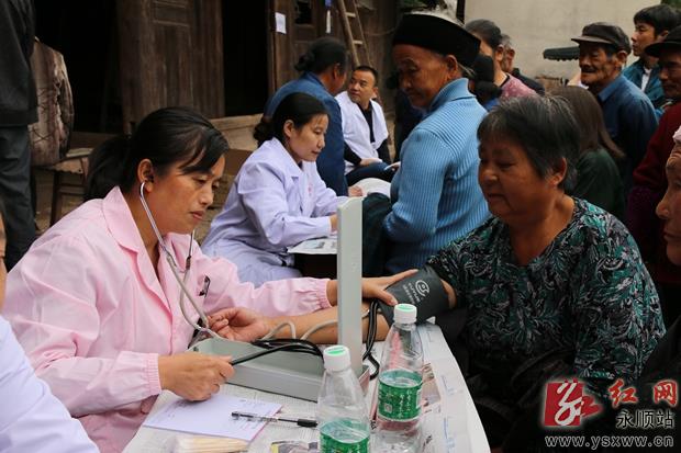 10月13日,永顺县纪委监察局邀请县中医院10名具有丰富临床经验的医护人员到建整扶贫联系村——抚志乡那必村开展义诊活动,零距离服务群众。活动中,永顺县中医院医务人员共为200余位前来就诊的群众诊病开方、测量血压,还广泛向群众宣传健康常识,倡导健康生活方式,加强疾病的预防,并为他们免费发放了3000元的药品。图为义诊活动现场。通讯员 熊辉 摄 作者:熊辉