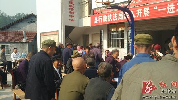 10月22日,永顺县城市管理和行政执法局党组书记、局长欧阳雨带领该局中层以上党员干部26人到灵溪镇石叠村开展“一进二访三联”活动,对确定的77户贫困户逐户核实生产生活情况,因户施策确定精准扶贫项目。同时,还邀请县中医院医护人员开展了义诊活动。图为义诊活动现场。通讯员 王勇 摄 作者:王勇