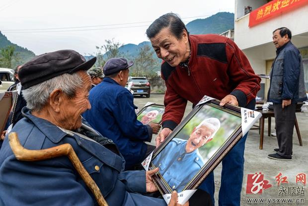 11月4日,中国摄影家协会会员、原湘西州协影家协会主席唐克立来到永顺县勺哈乡敬老院,为这里的32名老人赠送幸福照。唐克立执爱摄影事业,祟尚公益,从2009年起,已连续7年为湘西州八县市敬老院免费拍相,为老人们赠送幸福照。记者 余光龙摄 作者:余光龙