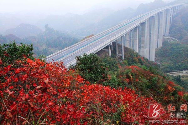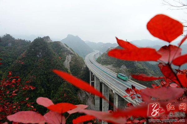 初冬时节,张花高速公路永顺县青坪段洞坎河流域内的红叶漫山遍野,层林尽染,美不胜收,令人陶醉。通讯员