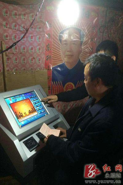 “村口银行”是永顺农村商业银行为健全农村金融服务基础设施而推出的一种便民服务模式。通过与乡村超市等商家合作,布设服务终端机具,群众在商户的协助下办理取款缴费、转账汇款、查询挂失、存折补登等基本金融业务。“村口银行”的助农金融服务终端集电脑主机、打印机、读卡器、密码键盘于一身,村民用银行卡、折卡在机上刷一下,输入密码并在回执单上签名,就可从商户处领取小额现金。