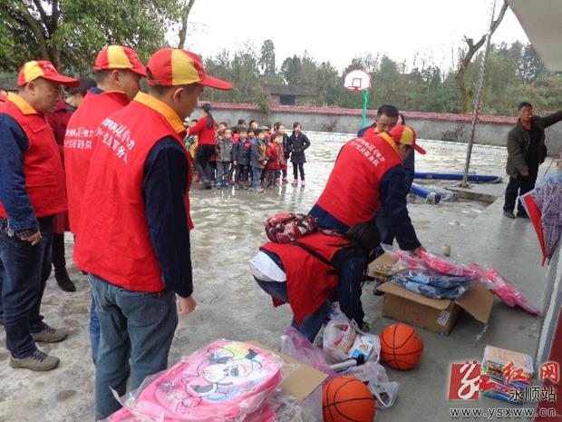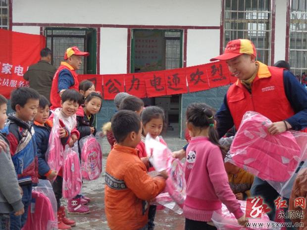 3月5日,永顺县电力共产党员服务队到砂坝镇白竹村和爱民村村小开展主题为“学雷锋献爱心·情系留守儿童”的关爱活动,传递社会温暖。活动中,志愿者们为两校的留守儿童送去了书包、文具盒、蓝球、跳绳等学习和常用体育用品,并与孩子们进行游戏互动,还为学校接电装灯、整修线路。图为活动现场。通讯员 全进芬 摄 作者:全进芬