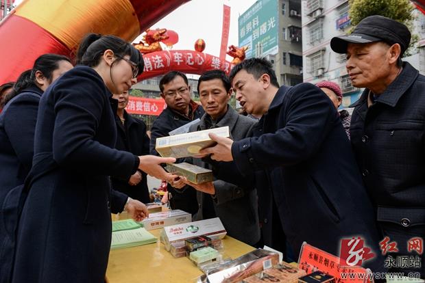 3月15日,永顺县举行“3·15”国际消费者权益保护日活动。县电力、经信、卫计等相关部门现场举办消费维权工作成果图片展、法律法规咨询、真假商品辨别等活动,旨在让《消法》广为人知、深入人心,进一步增强消费者的消费信心;积极营造安全放心消费环境,让消费者愿意消费,无忧消费,畅享消费,倡导文明、健康、节约资源和保护环境的消费方式;强化消费维权意识,维护好消费者的合法权益。记者 余光龙摄
