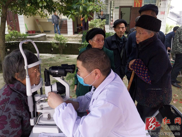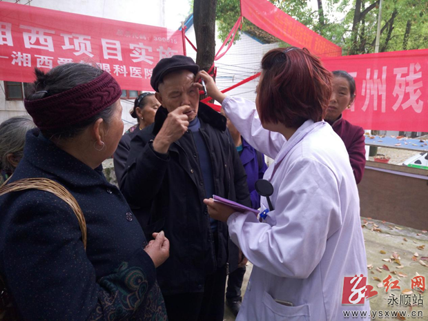 4月13日,永顺县青坪镇邀请吉首爱尔眼科医院联合开展白内障免费筛查活动。活动中,医护人员共免费为213名老人进行筛查,检查出患白内障老人45名。据悉,检查出的白内障患者可凭低保、五保、建档立卡贫困户等有效证明到吉首爱尔眼科医院免费接受白内障手术治疗。图为免费筛查活动。通讯员 向琴摄