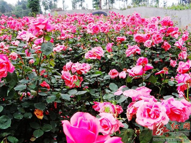 近年来,永顺县高坪乡充分利用交通便捷的区位优势,大力发展花卉苗木产业,从而带动形成了乡村旅游,走出一条以旅游观光促进农产品销售的路子,加速农民脱贫致富步伐。图为该乡马鞍村能人向泽军建成的300亩玫瑰园一角。通讯员 唐其柏 摄