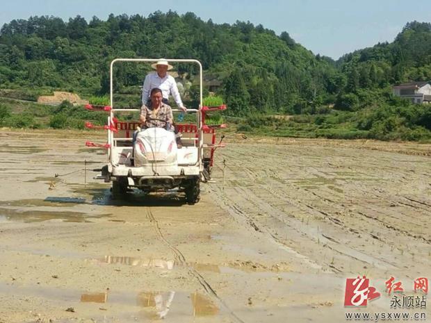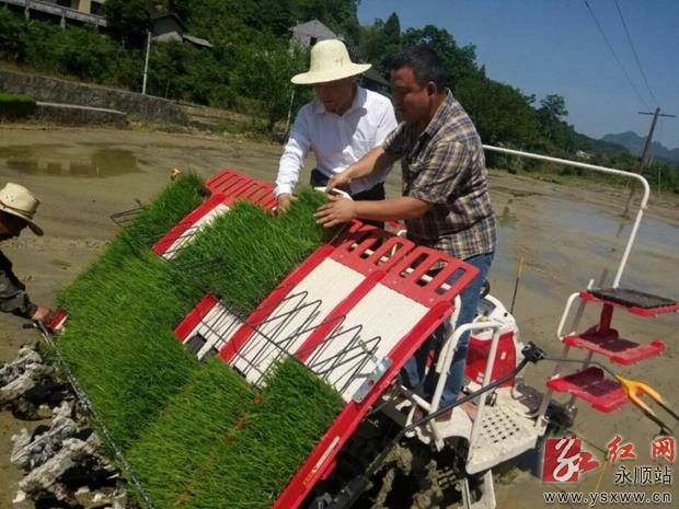 又是一年水稻插秧时。在永顺县灵溪镇沐浴村,随着机器的马达声,一株株秧苗在插秧机苗盘上滑落,整齐有序地插入水田里。和其他村民不同,该村种粮大户熊龙海实行机械化插秧,省时省钱又省力。 据介绍,熊龙海今年租了210亩稻田。因为他使用了插秧机,走上了规模化、机械化、集约化生产之路。原来几个人要好多天才能干完的插秧作业,现在一个人能搞定了,同时还能帮助缺少劳力的农户插秧。通讯员 彭晓凤 摄