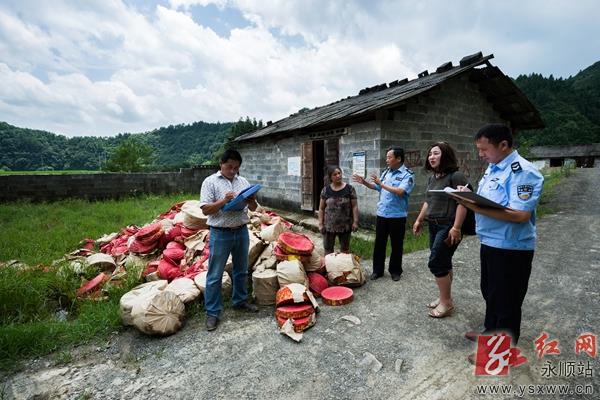 连日来,永顺县持续强降暴雨,塔卧镇大坝村一鞭炮加工厂房遭受水淹,损失严重。7月21日,永顺县安监局副局长彭盛带领执法人员来到塔卧镇大坝村一鞭炮加工厂检查指导灾后安全生产工作,排除安全隐患,尽最大可能减少企业经济损失。记者 余光龙 摄 作者:余光龙