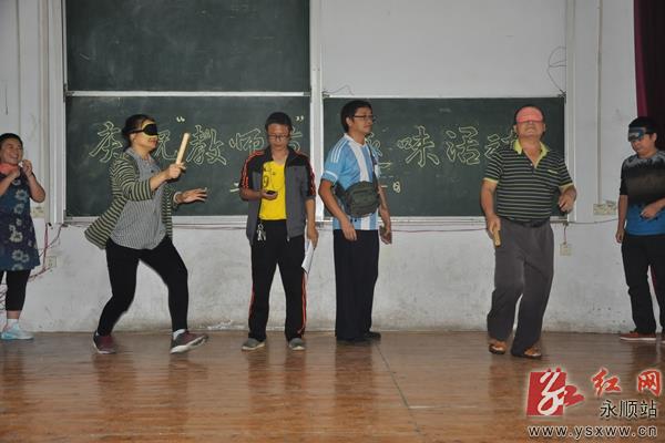 9月9日,第32个教师节来临之际,永顺灵溪二小100多名教职工齐聚阶梯教室,开展“瞎子敲锣”趣味活动欢庆自己的节日。有趣有味的活动不时引来阵阵欢声笑语,让老师们节日过得充实而有意义。 图为趣味活动现场。通讯员 谢生金 卢清兵 摄 作者:卢清兵