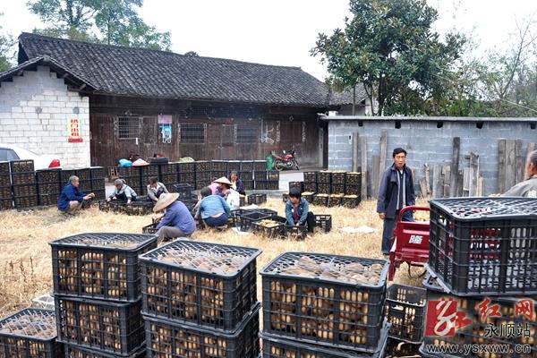 9月20日,永顺县松柏镇龙头村向卑如家1万余斤猕猴桃正在集中装箱,就地销售。今年,松柏镇耗资10余万元,聘请湖南盘古电商及苏宁易购两大网商平台对村民进行网络销售培训,让果农们将猕猴桃销到新加坡及全国各地,价格一般在每公斤15元至20元。通讯员 罗远程 摄 作者:罗远程