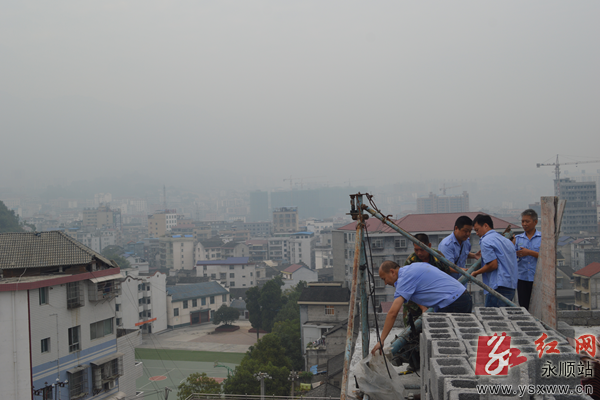 9月26日,永顺县查非纠违办统一部署安排,依法对灵溪镇玉屏社区两处“两违”建筑户采取停水、停电等措施,并强拆违建面积500平方米,没收施工工具吊机一台。图为执法人员依法强拆现场。通讯员 杜湘群 田炜 摄 作者:杜湘群 田炜