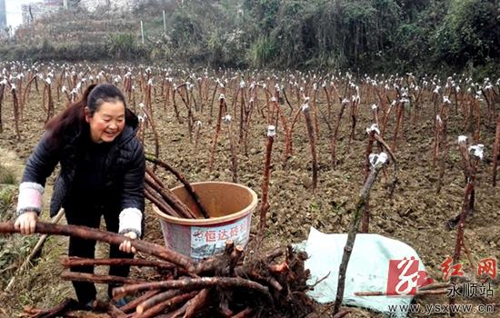 近年来,永顺县高坪乡在省道S229沿线乡村组织农户先后种植玫瑰花树200亩,猕猴桃、葡萄等水果4000亩,吸引了许多游客前来赏花游玩、农场摘果,每年为农户增收3500万元以上。图为1月1日,该乡场坪村后溶组村民移植玫瑰花树。通讯员 罗 艺 摄 作者:罗 艺