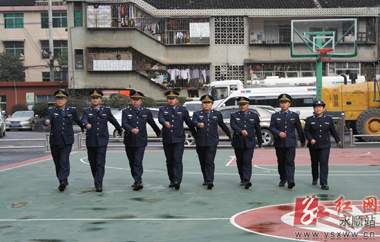 2月23日至24日,永顺县公路管理局举办路政暨安全培训班,重点培训了路政、治超、安全生产等方面的法律法规及交通手势和队列训练。图为培训现场。通讯员 喻开发 摄。