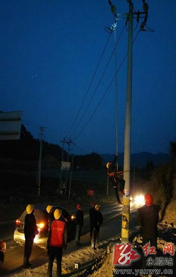 3月3日9点钟左右,永顺县溪州新城10kV杨西线因污垢导致两处高压用户专变避雷器同时发生故障,引发主线路跳闸停电,造成当地大面积停电。为此,国网永顺供电公司立即组织电力抢修队前去抢修,经6小时的奋战,该线路恢复了正常供电。图为抢修现场。通讯员 全进芬 摄 作者:全进芬
