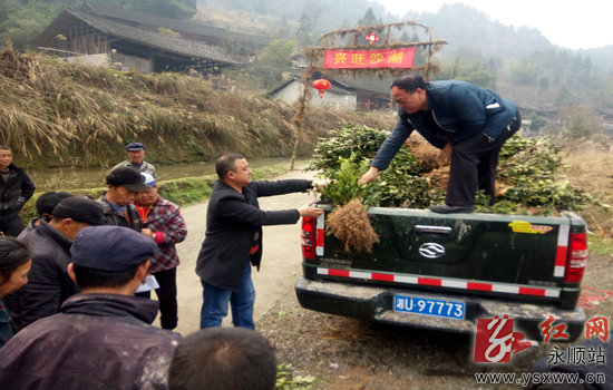 3月17日,永顺县食品药品工商质量监督管理局工作队将免费捐赠的5万株油茶苗送到精准扶贫联系村——灵溪镇沐浴村82户建档立卡户手中,并邀请了县林业局的技术员进行现场培训指导。通讯员 张远武 彭晓凤 摄 作者:张远武 彭晓凤