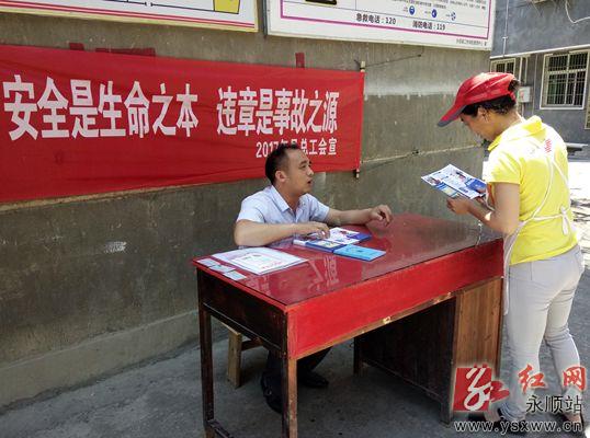 5月17日,永顺县总工会到永顺锦帛钰纺织有限责任公司开展安全生产和禁毒知识进企业活动。活动中,工作人员采取发放宣传资料、现场讲解、悬挂横幅等方式向该公司职工宣传安全生产的重要性和毒品的危害性。活动当天,共发放宣传资料500份,接受职工咨询200余人。记者 吴顺忠 摄 作者:吴顺忠