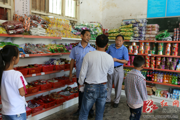 9月7日,永顺县青坪镇联合县食品药品工商质量监督管理局开展学校及周边食品安全风险隐患排查整治工作。行动中,执法人员共检查校园及周边食品经营单位21家,没收麻辣食品67袋、过期食品35包、不合格牛奶饮料24瓶。 通讯员 朱致文 摄 作者:朱致文