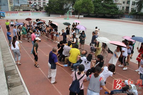 为庆祝教师节,9月8日,永顺县灵溪一小举行“快乐教师节”拔河比赛。场上,选手们个个精神抖擞,全力以赴。场下,加油声、喝彩声、欢笑声此起彼伏。经过2个多小时的激烈角逐,最终五年级组技高一筹获得冠军。通过这次活动,不仅减轻了教师们的工作压力,让他们在比赛中尽情享受节日的快乐,同时也增强了教师们的集体凝聚力。 吴顺忠 彭国辉 摄