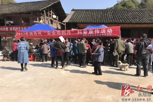 ——永顺县灵溪镇洞坎村开展安全用药科普知识宣传活动。图为活动现场。 通讯员