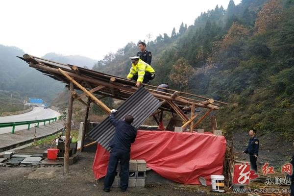 11月20日上午,永顺县公路管理局组织路政、治超执法人员深入永龙高速连接线环城连接线开展“两违”整治行动。行动中,执法人员共拆除沿线非法搭建棚2个,切实推进了公路“两违”整治工作,保障了县城路域交通安全畅通。通讯员 喻开发 姚珍亮 摄
