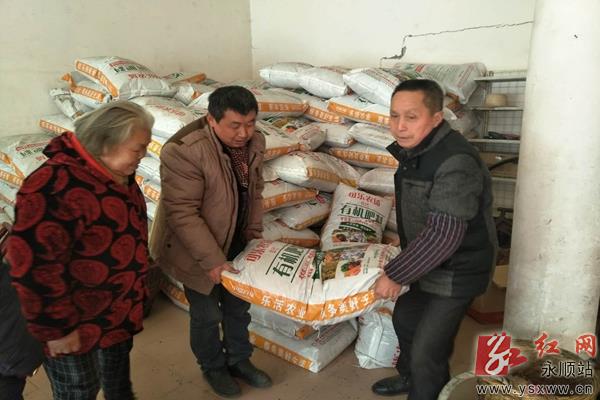 2月5日,永顺县永茂镇及时把调来的209包核桃肥免费分发给于家村50户建档立卡贫困户,便于贫困户们抢抓立春节气对去年种植的104亩核桃苗施肥,助力脱贫攻坚。通讯员 吴金俊 摄