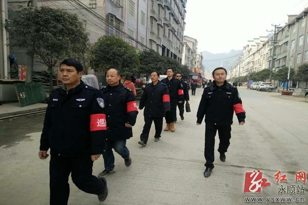 近日,永顺县永茂镇组建由镇执法队、派出所、基干民兵等组成的治安巡逻队,采取定点和流动相结合的方式,对辖区内街道、市场、超市、车站等重点地段,全天候巡逻防控,确保广大群众过一个安定祥和的春节。 通讯员 吴金俊 张健 摄