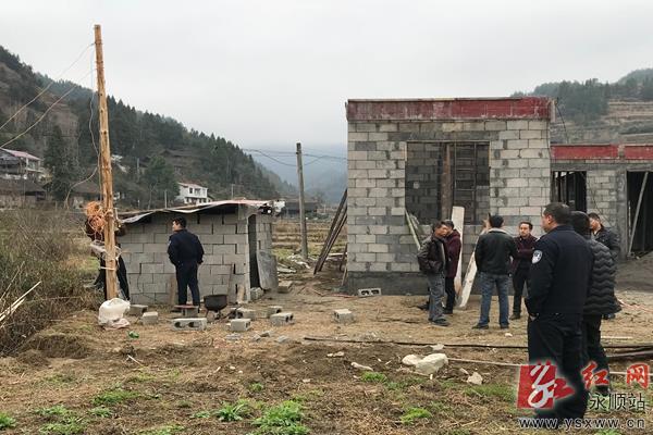 3月12日,永顺县对山乡联合县国土资源局、泽家派出所、泽家供电所等相关部门开展联合执法,对辖区内的两起“两违”建筑,依法下达停建通知书,并切断违法建筑供电线路。经查,两起“两违”建筑均未经相关部门审批,是当事人擅自占用农田及河道的“两违”建筑。通讯员 田丽 摄