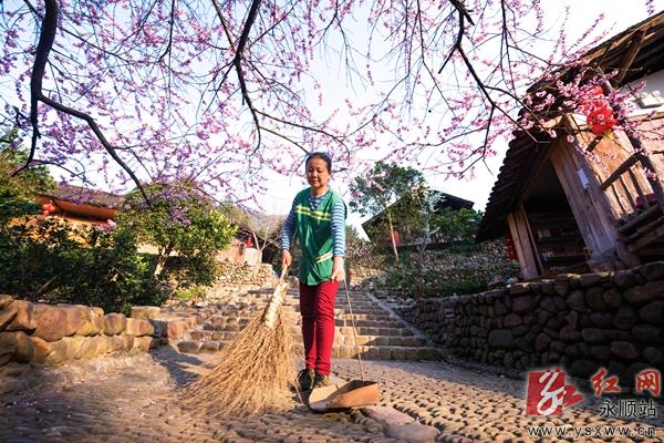3月15日,永顺县老司城国家考古遗址公园保洁员黄纯玉在遗址核心区域清扫游道路面垃圾。今年53岁的黄纯玉是司城村民,担任保洁员已3年时间了,分管保洁游道路段约3公里,每天清早到傍晚不间断地清扫游道,时刻保证路面清洁,被广大游客誉为最美司城保洁员。 永顺分站记者 余光龙 摄