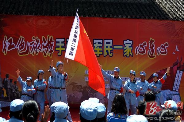 红网时刻3月23日讯(永顺分站记者 彭建国)3月22日,湘鄂川黔革命根据地旧址——永顺县塔卧镇迎来首个300多人的大型红色旅游团队,他们大多是革命后人,重走父辈长征路,追寻红色记忆,传承父辈革命遗志。永顺县委常委、组织部长李延堃出席文艺演出活动并讲话。